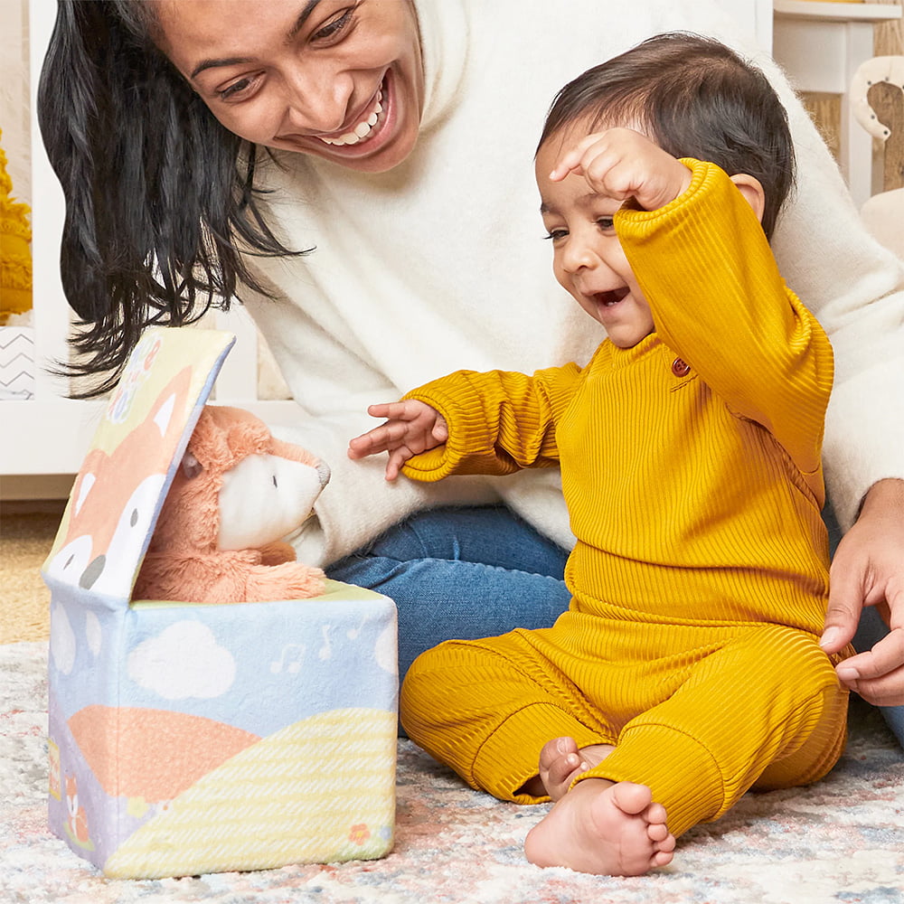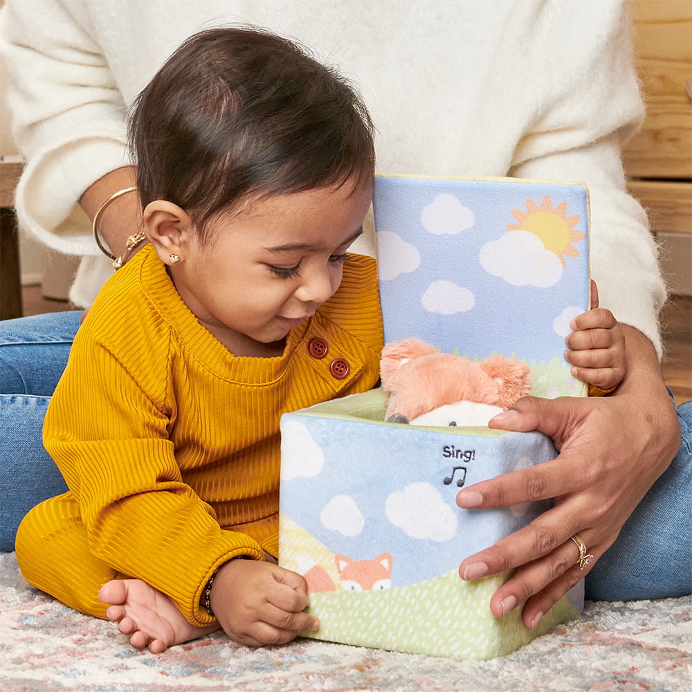 ピーカーブーベアやフラッピーザエレファントなど、「いないいないばぁ!」をする動くぬいぐるみで人気のGUND(ガンド)から、ボックスからキツネさんが出てきてお喋りやお歌を歌う知育玩具が登場しました。