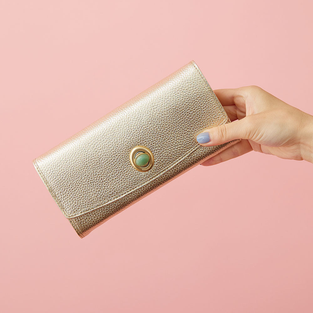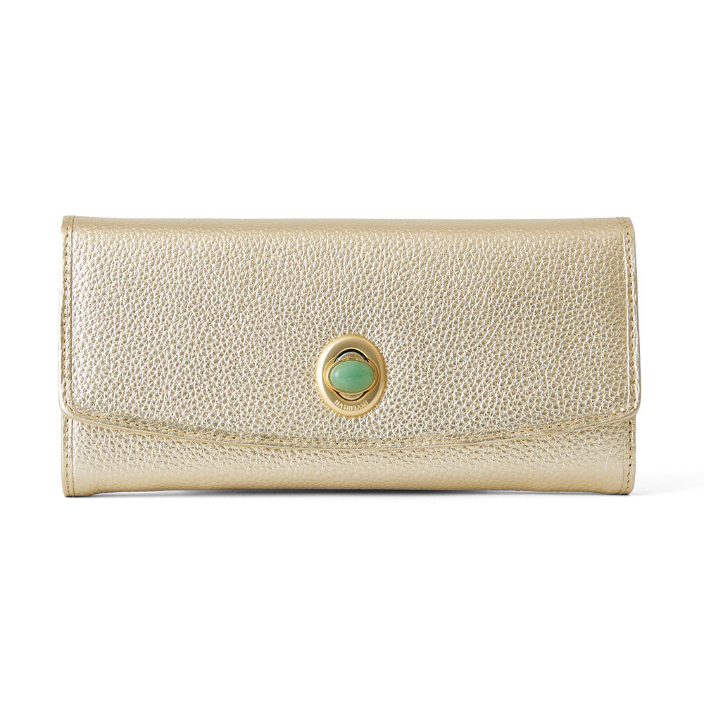 ゴールドでも落ち着いたカラーで日常に使いやすい「HASHIBAMI」のロングウォレットがおすすめ。