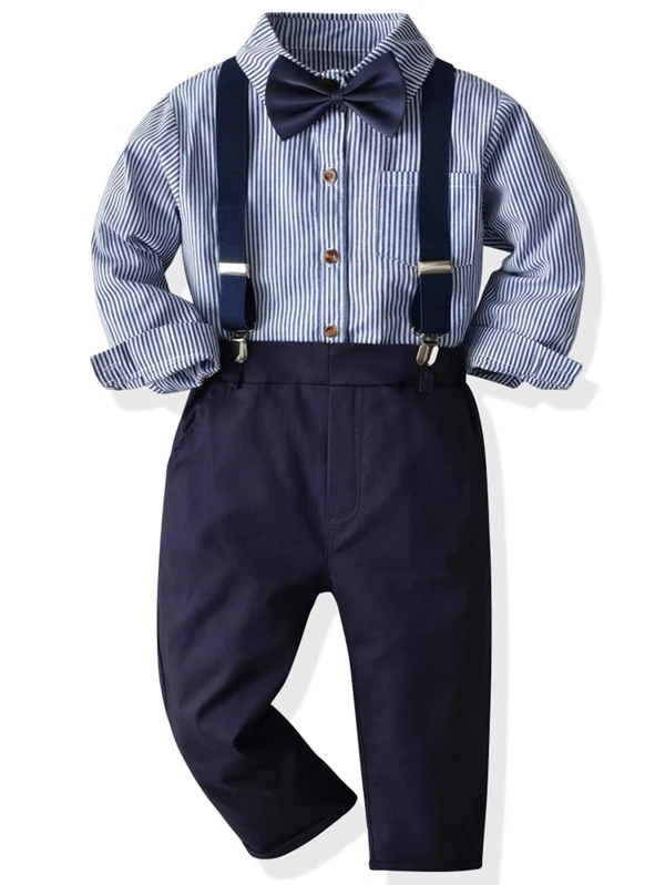 蝶ネクタイ付きストライプシャツ&パンツセット