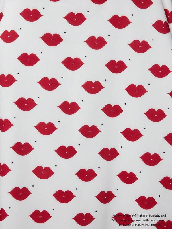 一見するとハート柄のように見えるんですが、マリリンを象徴する赤いキスマークとホクロの総柄デザインになっています。